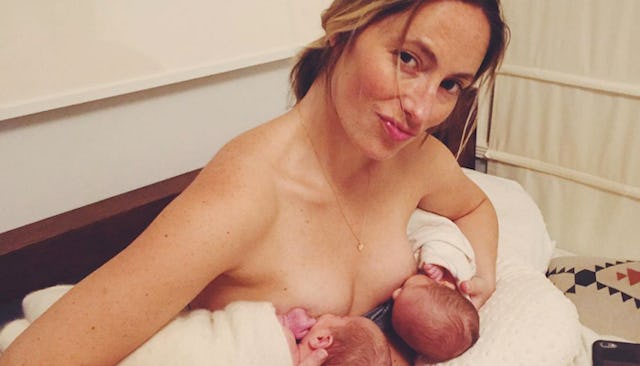 Elaina Bellis is an art director and mom of three, who recently gave birth to twin daughters, Quincy and Rowe. In a post on Instagram, Bellis is seen tandem nursing her daughters like a champ, but it’s the photo’s caption that’s really got people talking. In it, she explains that she’s not producing enough breastmilk for her babies and never will, and after a very difficult few weeks, she’s learned to accept that what she’s doing is enough.