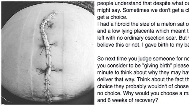 “A new day and a what seems to be another new post from someone insinuating that giving birth by cesarean means that you didn’t give birth,” writes new mom Jodie Shaw. She shared a photo of her c-section scar, to remind people who think women who’ve had a surgical birth haven’t truly experienced birth to shut the hell up.