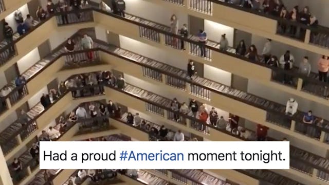 There were an estimated 650 students singing together, according to Buzzfeed, which is insanely heartwarming — and also their voices are on point. The sing-along is actually an annual tradition for the Kentucky choir groups, with videos dating back to 2013. Each year, the students gather on all 18 floors of the the Hyatt hotel in Louisville, Kentucky and belt their patriotic hearts out.