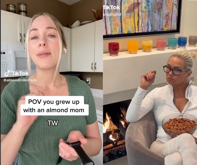 The term “almond mom” has since become a thing, with people sharing their own “almond mom” stories on social media. With more than 179 million views on TikTok alone (!), it’s clear that plenty can relate to the experience of life with a parent who scrutinizes food intake in a restrictive and downright disordered way.