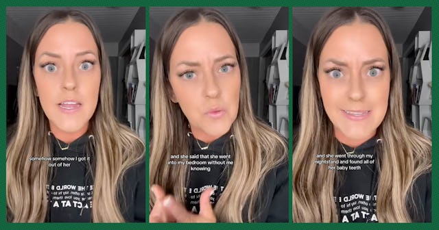 Wrapped up in a bit of tissue and crammed into the corner of many a mother’s junk drawer is a collection of teeth. It’s weird and more than a little creepy, but for generations, moms around the world have been hoarding their kids’ baby teeth. Are your kid’s teeth inexplicably yellow? Did they already have cavities? Doesn’t matter. You saved them. Why? *shrug* It was part of your tooth fairy duties. But one TikTok mom is out to warn others: Hoarding your kids' baby teeth can backfire both horrendously and hilariously.