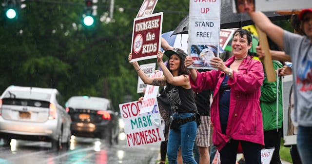 The nationwide walkout seems to be the natural evolution of the heated school board meetings and protests we’ve seen for months from parents who say their kids are (somehow) being harmed by wearing masks to school (even though their whole purpose is to, you know, protect from a deadly global pandemic). The pinned post on the Moms for Liberty Facebook page proudly proclaims “We do NOT CO-PARENT with the GOVERNMENT.” COVID-19 be damned, these moms apparently won’t stand for the tyranny of the GOVERNMENT trying to keep kids safe.
