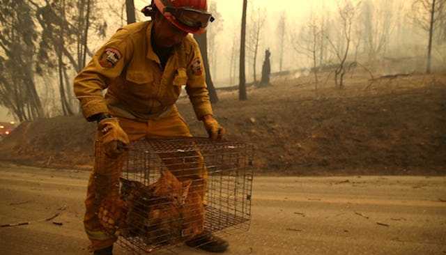 These mass evacuations, some with only hours notice, meant pet owners, farm animals, and wildlife also had to scramble to get their fur babies to shelter. There have been dramatic pictures coming out of the fires, and these images will leave you both heartbroken and thankful so many were able to be rescued.