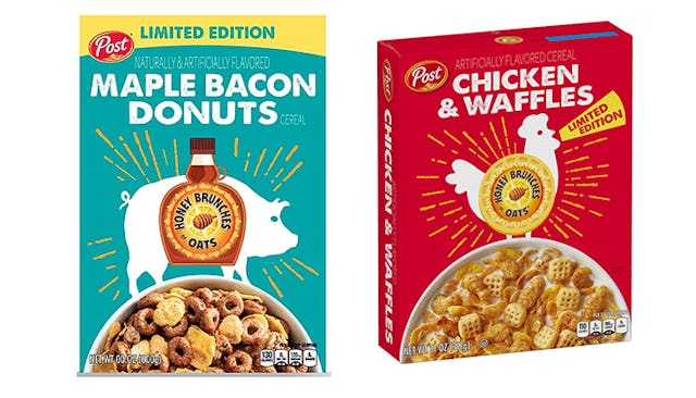 If you’re interested in getting in on Post’s National Cereal Day celebration, but not ready to go full pollo loco, Post is also releasing a slightly more palatable maple bacon donuts cereal.