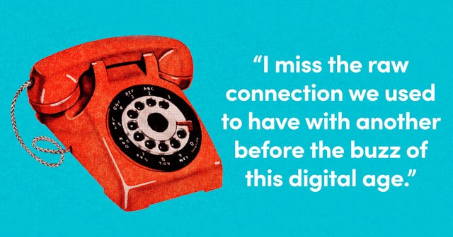 Still, I miss the raw connection we used to have with one another before the buzz of this digital age. My heart may not be aching to bring back the long, twisty and always-to-be-tripped-over phone cord that came with a landline, but I miss sitting at the kitchen table taking my phone calls and hearing about someone else’s day. I miss hearing that continuous ring during dinner and letting it roll over to the answering machine to pick up later. And I miss saying, “Let me call you back at nine when this phone call is free.”
