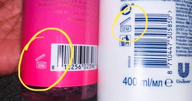 “How old were you when you found out…that this means how long you have to use that product from the date you break the seal before it’s no longer considered a “good product,” reads the caption, upon a photo of two bottles with the open can thingy circled.