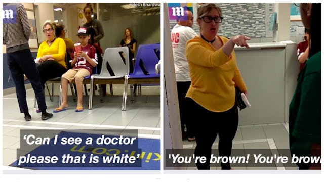 Yes, as Bhardwaj pointed out, Bitchy McFuckface had no shame whatsoever about parading up and down the waiting room yelling about how she wants a white doctor. She doesn’t lower her voice, she doesn’t even blush. She feels entitled to have this point of view, to subject other people to it, and to have her demands met. And that is scary. It’s not that racism is more prevalent these days because it’s not — it has always been there — but racists have gotten a lot bolder since people expressing similar points of view have gone mainstream. And that is why we need more and more people to be as brave as the young woman who finally confronts McFuckface towards the end of the video.