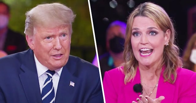 We still don’t know who “won” last night’s dueling town hall events: Donald Trump on NBC, and Joe Biden on ABC. What we do know is that the American public, who missed out on a debate between the candidates because Trump refused to participate virtually after his recent coronavirus diagnosis, were forced to choose which candidate they wanted to watch during the simultaneous events, and that’s a major disservice to the public. Regardless, if Trump thought he was getting an easy way to boost his floundering campaign after ditching the debate, he forgot to account for one thing: Savannah Guthrie.