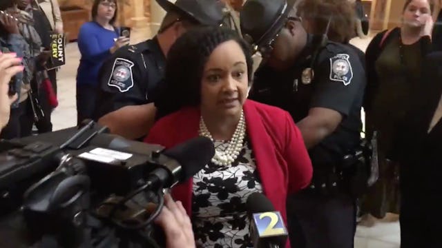 “I joined them down on the floor and I was singled out as a black female senator, standing in the rotunda with constituents in the Capitol, in the body that I serve in, and I was singled out and arrested today for standing with so many Georgians who are demanding every vote be counted,” Williams later told reporters. When asked if the arresting officers knew she was a State Senator (not that it matters, since she was among people demonstrating their First Amendment right to protest), she replied, “I wear my name tag every day in the Capitol.”