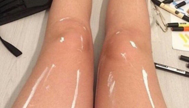 This photo of shiny legs (or white paint-streaked legs?) is making the internet upset