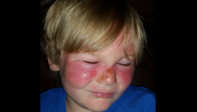 3-year-old Liam Sayers of Virginia spent at least five hours in the sun wearing SPF 50+ Banana Boat kids spray sunscreen, his mom Jennifer Sayers told WTVR CBS 6. “Multiple times during the day we had the kids come out of the water, dried them off completely and then reapplied the sun spray as directed,” she said. Liam was fine on the way home from the beach but woke up with swollen eyes and swelling and blistering on his face.