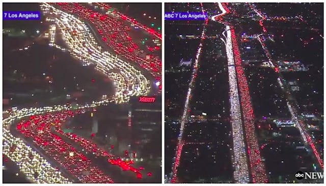 If you were driving into or out of Los Angeles last night, are you okay? Because from the sight of this aerial footage, it looks like you could use a massage.