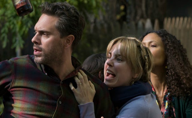 When the slap comes, it’s as inevitable as a gun firing in a Chekhov play—all these desperate people who want what they want but can’t get it, thrashing against their restraints. The transgression of hitting a child opens the floodgates: The backyard becomes a ring of screaming parents, circling like boxers. For the first time all emotions on display are raw and sincere.