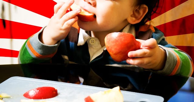 Actually, I was really happy that he was eating the apple slices, because he was a very picky eater and anything healthy that he wanted to consume was welcome. And boy was he going to town on those apple slices, standing right at the table in front of the bowl of apples and eating one after another in rapid succession.