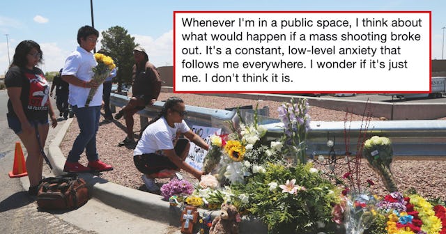 People are tweeting about the new kind of anxiety they feel every time they go into crowded or public spaces and are forced to think about the possibility that someone could open fire at any moment. Not only are the tweets heartbreaking, but they’re relatable, because these are thoughts that every American now confronts.
