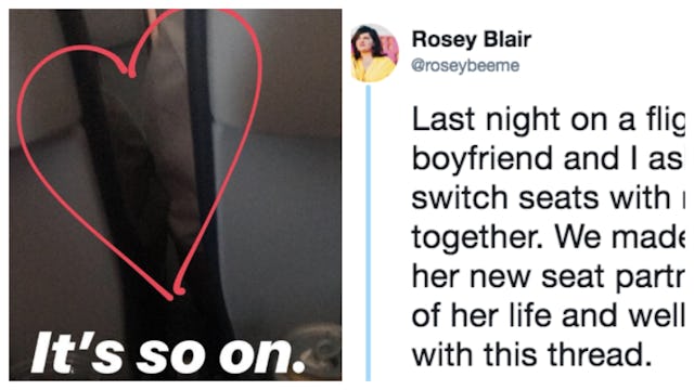 It all started with a plane seat. Rosey Blair was traveling with her boyfriend and she asked a woman to switch seats so the two could sit together. “We made a joke that maybe her new seat partner would be the love of her life and well, now I present you with this thread,” Blair began.