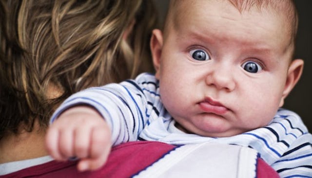 2. Is he still a bobble-head? He needs to be able to hold his head in a steady, upright position before starting on solids. If he’s not, you know what that means: Hello, tummy time.