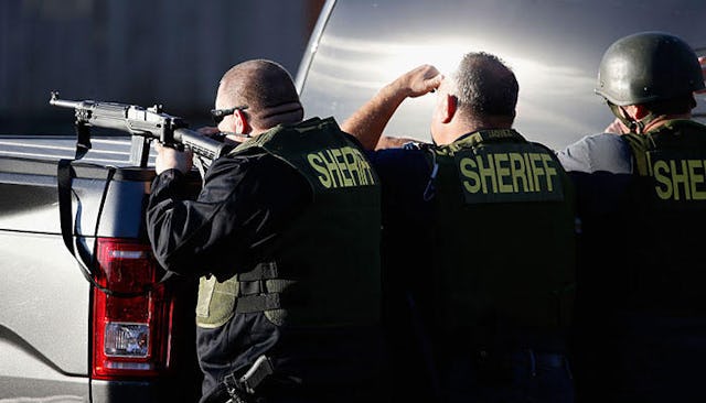 I’m sitting in the safety of my kitchen with my four children. I am relieved that the oldest three have arrived home safely from another day at school when I learn that someone, or a couple of someones, are shooting up a center for the developmentally disabled in San Bernardino. My baby is on the floor, happily chewing away at her Little People Nativity Set, the donkey now covered in a shiny coating of her drool.