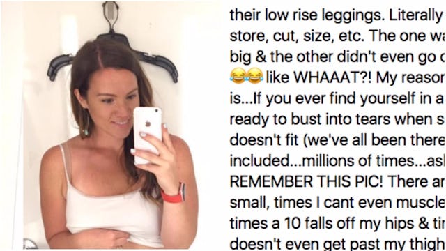 “If you ever find yourself in a fitting room ready to bust into tears when something doesn’t fit (we’ve all been there, myself included…millions of times…ask my mom) REMEMBER THIS PIC,” she writes.
