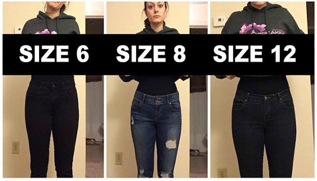 Shoemaker’s collage proves that clothing sizes are more or less bullshit, and it’s infuriating. Showing herself looking the same in a six as she does in a 12 from another brand, her point is clear — sizes mean nothing, and women shouldn’t let that stupid number dictate their self-esteem and worth.
