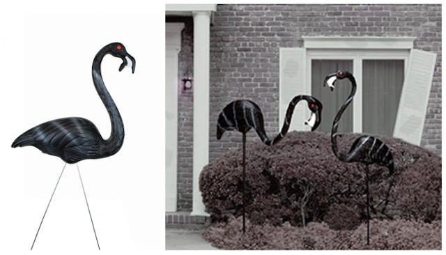 Say goodbye to the hot pink flamingos you used to float around in the water this summer. These bad boys are jet black, have beady red eyes, and look pretttty sinister. They come in packages of two, complete with metal stakes to stick into the lawn.