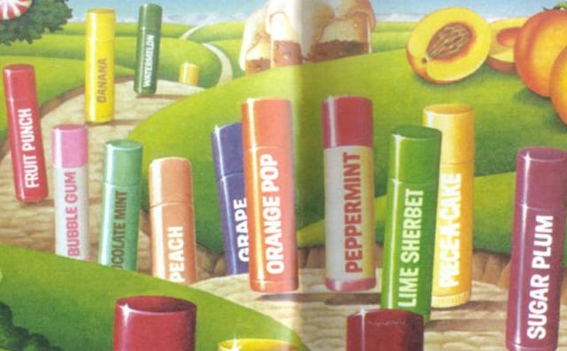 I may be slightly makeup-crazed now, but when I was in elementary school, I was a study in low maintenance. In fact, my regimen consisted of careful application of precisely one product: lip balm. Although we didn’t really call it “balm” then—we were less concerned with the moisturizing effects of the stuff and really more concerned with the taste. The ’80s were a lip product extravaganza, an artificially flavored wax fest bookended by cherry ChapStick and Revlon Silver City Pink. In between were the rainbow packages and fruity smears and status-symbol roller balls that were every young girl’s calling card.
