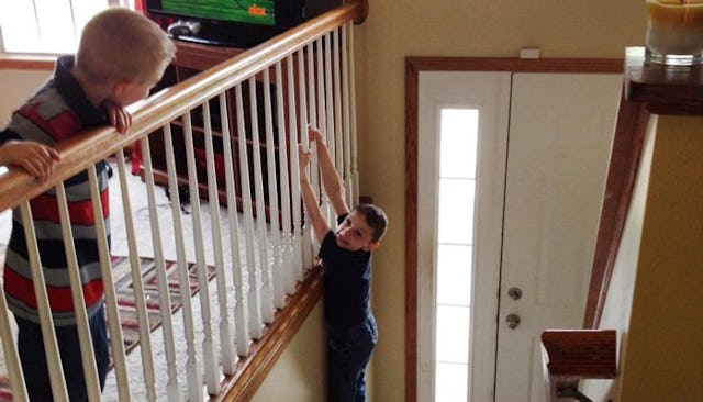 4. You must rethink your standards of “safety.” Okay, nobody call child protective services on me – I’m not talking about letting your kids ride without a car seat or letting them play with a lighter. But think about the mom you know (and we all know at least one) who sterilizes her kid’s pacifiers and bottles religiously. The mom who hovers endlessly and gasps loudly when her precious snowflake takes a teensy-weensy tumble. You know that mom? Yeah. You can’t be that mom when you have a boy, because boys are just rough. They jump off of things and slide down things and climb up things and roll and tumble and tackle and leap and pounce and run. ALL THE TIME. They taste dirt and kitty litter and glue and hardened gum from beneath park benches and restaurant tables just out of curiosity (I mean, one of my boys ate candy that had been peed on). They try to ride their bikes, scooters, and skateboards faster than everyone else … and try to out-jump everyone else on trampolines. And if you’ve got multiple boys? Fuhgeddaboutit. They do all that plus wrestle, and occasionally get into full-blown knock-down drag-out fights.