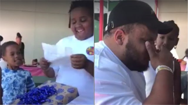 Ten-year-old Kalani Watson just couldn’t wait until Father’s Day to give his stepdad the most special gift. So instead, he carved a moment out of his own birthday party to “propose” to his mom’s husband, asking the man to adopt him. I’m not crying, you’re crying.