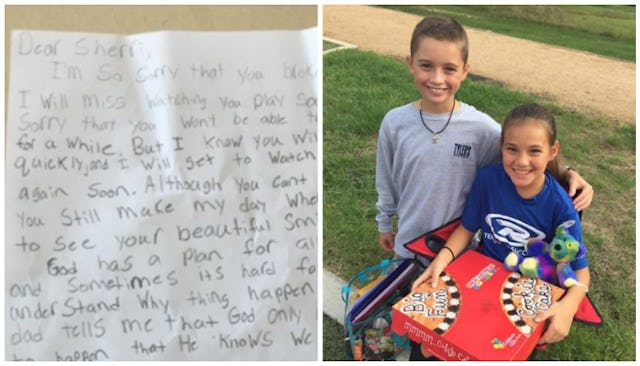 So when Sherri tore her ACL playing soccer last week, Cole was worried. His mom, Brandi Lanclos, says she and Cole were at the game and saw it happen. “He came home that night and said, ‘I want to write her a letter and get her something to make her feel better.”