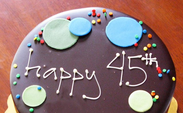 But my kid takes cares of that, saying, “My Mommy’s 45 today!” I hear an audible gasp permeate the room, which I later realize came from me. And while the parents in the room are polite, I know they are taken aback. I can’t believe it either. Forty-five isn’t middle-aged, it’s half the age when someone writes about you in the newspaper and says, “She lived a really long life.” And here I am, 45 and still just getting started.