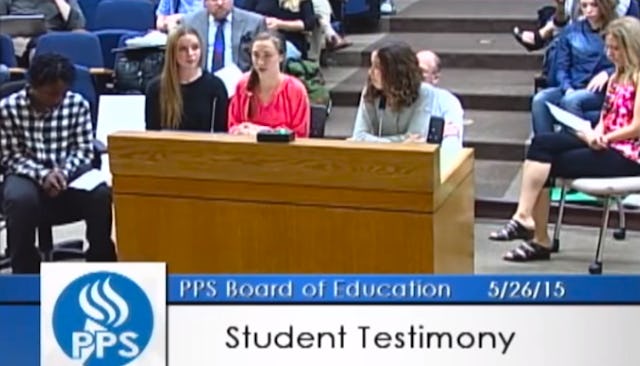 After hearing their testimony, the school board agreed there needed to be changes to the current rules, so a committee was formed. It was made up of students (including Sophia), parents, teachers and community leaders like Lisa Frack, president of the Oregon chapter of the National Organization of Women. “We don’t want to link clothing and learning. You can’t learn math better or worse whether you have a tie on or a collared shirt or a tank top,” Frack said.