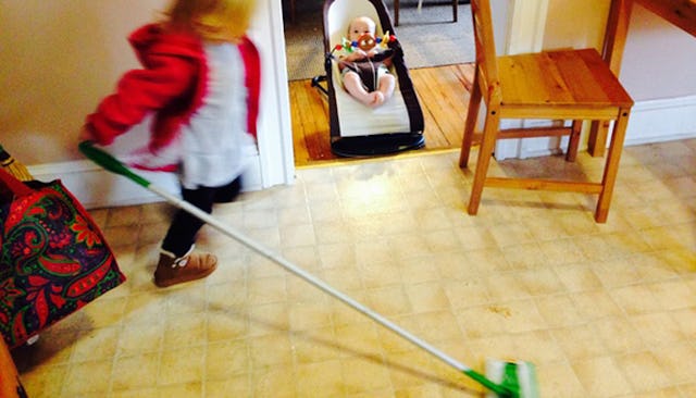 4. Sweeping. My kid would happily sweep all the live long day and nickname herself Cinderella if her attention span lasted more than six seconds. Luckily, there’s always a mess for her to practice this skill on. While she usually just sweeps messes in a circle or dirt under the refrigerator, hey, at least it’s kind of out of sight, out of mind! In fact, she’s the only person who has swept the fall leaves off our sidewalk this year before they got covered in snow. She has a preschool-sized broom and she definitely uses it more than I use my grown-up-sized one. This one rakes in at just a shade under “moderately helpful.”