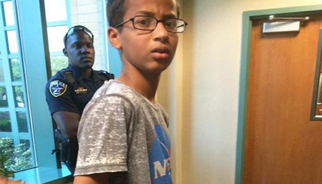 Mohamed was new to the Texas school. He loves engineering and building things — he makes his own radios and repairs his own go-kart. But Monday this week he was arrested because his teacher, administrators, and local police didn’t believe him when he told them he was just “trying to make a clock.” He told the Dallas News that when police officers walked into the principal’s office where he was being held, an officer he’s never seen before said, “Yup. That’s who I thought it was.”