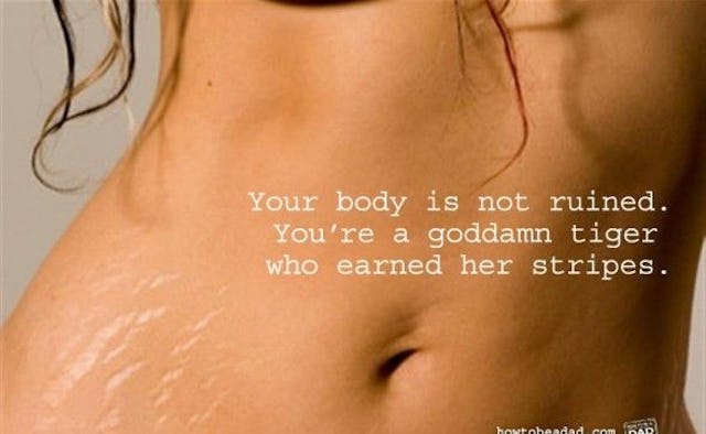 I understand why people responded to it and why it has the number of likes that it does. Our stretch marks and lose skin and dimples may not have been there twenty years ago, but they are part of who we are now and, therefore, they are beautiful. We earned them.