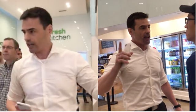 Manhattan lawyer Aaron Schlossberg flipped out on Tuesday when he overheard deli workers speaking in Spanish to customers. Schlossberg’s racist rant was captured on camera and quickly spread online. Since then, more videos have surfaced that show the lawyer has been harassing people with his bigoted rants for years. Happily, there are also videos of him running from those calling him out for his repulsive views.
