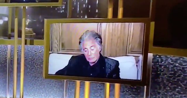 The show was peppered with incredibly awkward moments when the screen would pan across a wall of TVs that showed celebs on Zoom, and they would make excruciating small talk with one another before we were blissfully sent to commercial. It was probably the worst thing about the COVID-era Golden Globes, until, during one of those segments, the camera zoomed in on the screen where Al Pacino was clearly snoozing, and he started awake like a freshman in a 7 a.m. lecture.