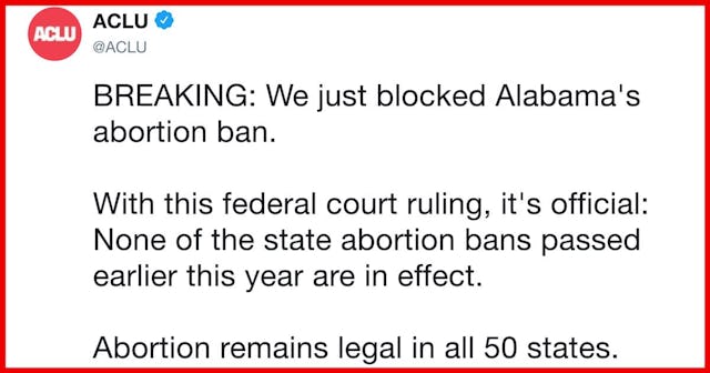 Alabama Abortion Ban Blocked Making Procedure Legal In All 50 States