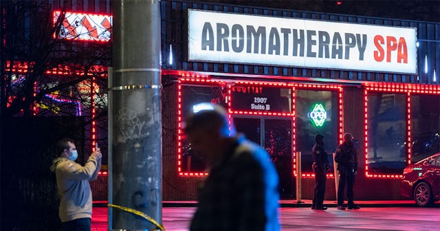 Police say the rampage started at Young’s Asian Massage in Acworth, where two people were killed at the scene, one died en route to a hospital, and another died later while being treated. The Atlanta Journal-Constitution reported that two of the victims were Asian women, one was a white woman, and one was a white man. Police also said a Hispanic man was injured in the shooting.