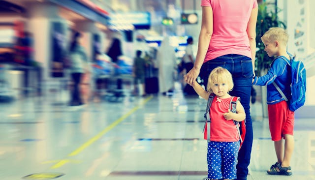 Fast-forward five years, and you will find me waiting in an airport security line, hunched over with a convertible car-seat carrier the size of a shed on my back. In one hand, I am dragging a wobbly suitcase, and the other is clutched to a small boy who is kneeling on the floor, groaning up at me with his discontent. A large bag filled with snacks and crayons and airplane toys sways across my middle like an udder. The rest of the bags are under my eyes. I have a sneaking suspicion my shirt has crept above my midriff, but there’s nothing I can really do about it now.