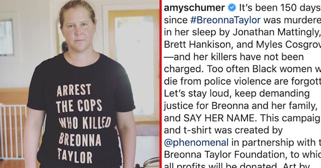 In a new Instagram post, Amy Schumer wears a “Say Her Name” shirt honoring Breonna Taylor 150 days after her death