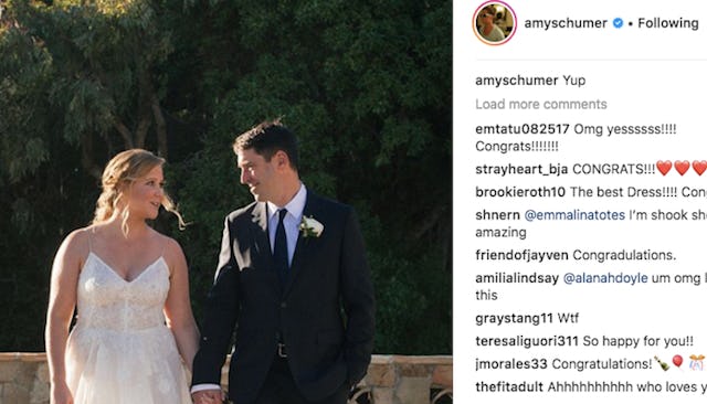 Oh yeah, and Schumer followed up her wedding post with a public declaration that, no, she is NOT pregnant. Also, in lieu of gifts she asked that donations be made to Everytown, a nonprofit that advocates for gun safety. Love that idea very much.