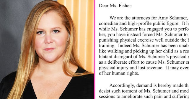According to Schumer, her lawyer served her trainer with the full legal spiel: “We are the attorneys for Amy Schumer, an internationally known actress, comedian and high-profile public figure,” the cease and desist begins.