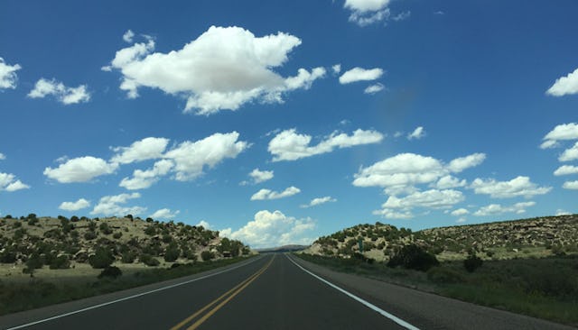 As we left the city, and the traffic finally waned, the view from the passenger window shifted from unremarkable to downright beautiful. I was immersed in the changing scenery and the rhythm of the highway—thinking about nothing and everything all at once. We drove for hours through a flat Western landscape until our agreed-upon resting point in Clovis, New Mexico, where we crossed from Central Time to Pacific. When I saw the clock on my phone erase an hour, I wanted to do it again, repeatedly—go over the time line, then back again, so I could watch my phone make the switch. It was as if I held the power to slow, then speed up, then slow my own aging process.