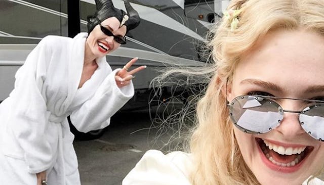Sadly, we haven’t gotten a whole lot of details about the upcoming sequel’s plot BUT Fanning posted a few delightful behind-the-scenes shots from filming. Let’s just say you haven’t lived until you’ve seen Angelina Jolie photobombing. It feels both wildly out of character and also deeply, deeply satisfying.