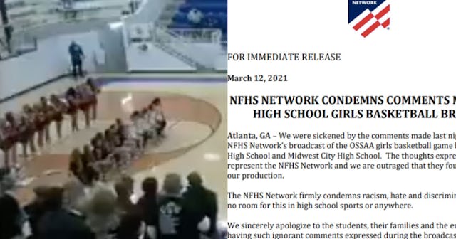 Per Yahoo News, the announcer Matt Rowan, was hired by the Oklahoma Secondary Schools Activities Association and was apparently a contractor for the NFHS Network, which airs the high school games online with commentary. Since the traumatic outburst, the NFHS Network has “cut ties” with that announcer.