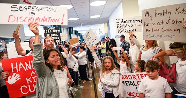 Anti-Vax Parents Protest In NY After Their Unvaccinated Kids Kicked Out Of School