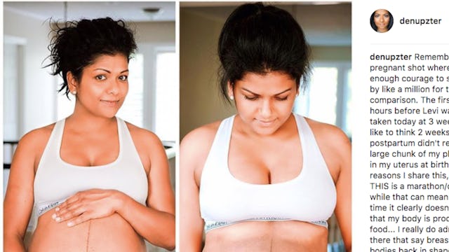 Her side-by-side photos show that post-partum bodies don’t “bounce back” immediately after birth