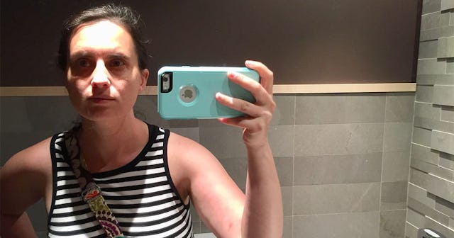 On the surface, it just looks like a tired lady pushing 40 who is taking a pic of herself for some unknown reason. But to me, it was an act of bravery and self-preservation to take this photo. You see, when I took it, I was in the middle of a panic attack.