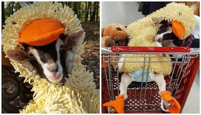 This Anxious Goat Only Calms Down When Wearing A Duck Costume