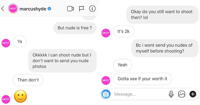 Earlier this week, LA model and student Sunnaya Nash posted an Instagram message exchange to social media. The exchange was between her and celebrity photographer Marcus Hyde, a favorite of famous folks like Ariana Grande and Kim Kardashian. And it was eye-opening and very, very gross.
